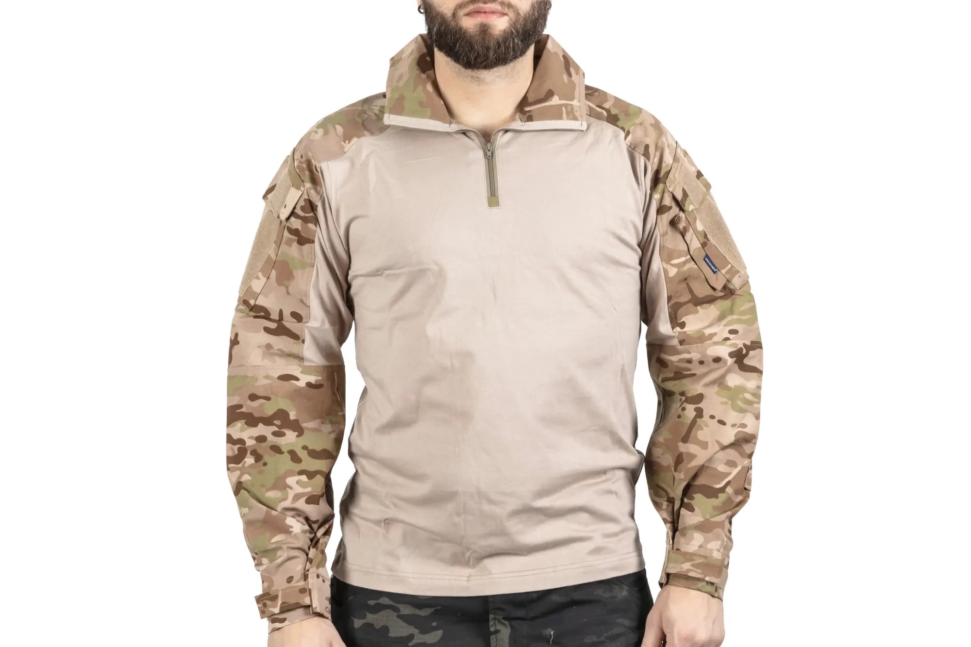 Bluză de luptă tip G3 (Combat Shirt)Bluză de luptă cu partea centrală realizată din bumbac cu o mică proporție de material elastic.Este concepută astfel pentru a oferi confort sporit și respirabilitate atunci când este purtată sub veste