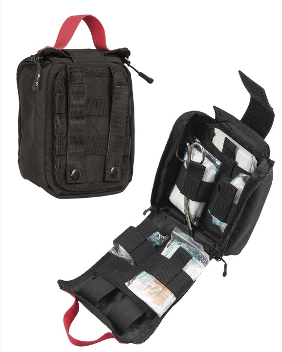 IFAK – Trusă individuală de prim ajutorMaterial: 100% poliester, acoperire cu poliuretanDimensiuni: 16 x 7 x 21,5 cm Greutate: aprox. 470 gConținut:- Pătură de supraviețuire argintie/aurie 160 x 210 cm- Bandaj triunghiular 136 x 96 x 96 cm-