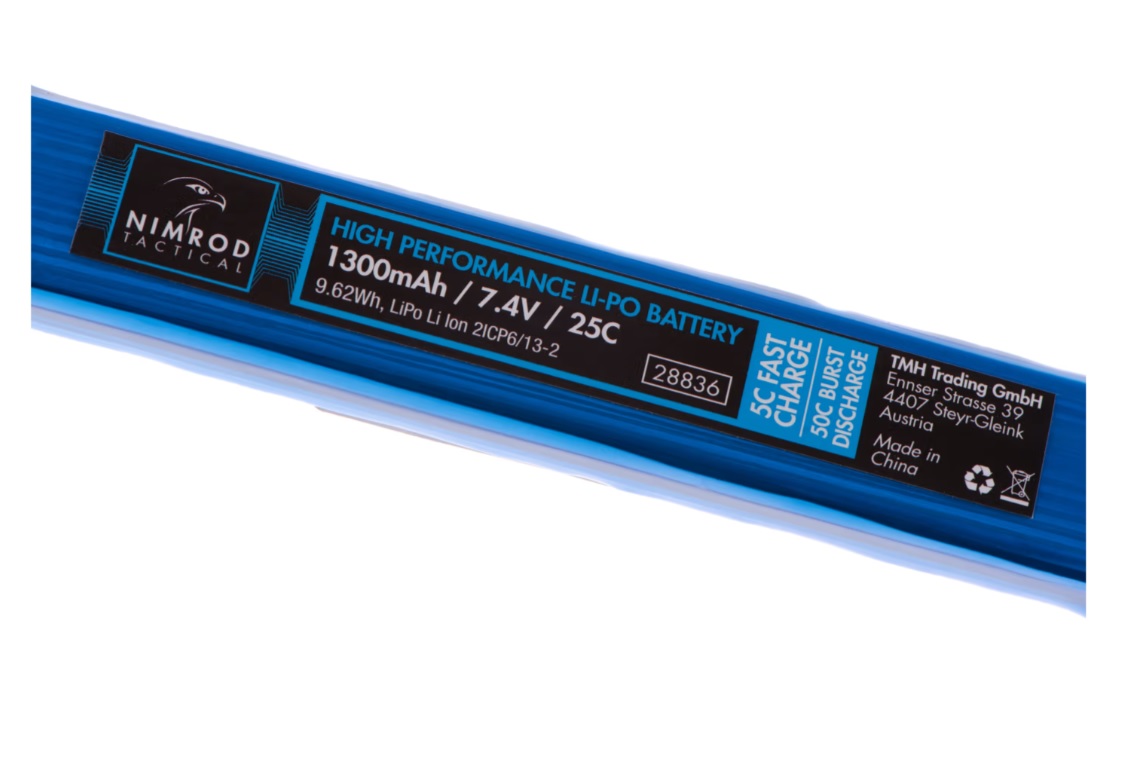 Specificații tehniceTensiune nominală: 7.4V (2S – două celule în serie)Capacitate: 1300mAhRată de descărcare continuă: 25cStick – ideal pentru replici cu spațiu restrânsConector: TamiyaDimensiuni: aprox. 105 × 20 × 10 mmGreutate: aprox.