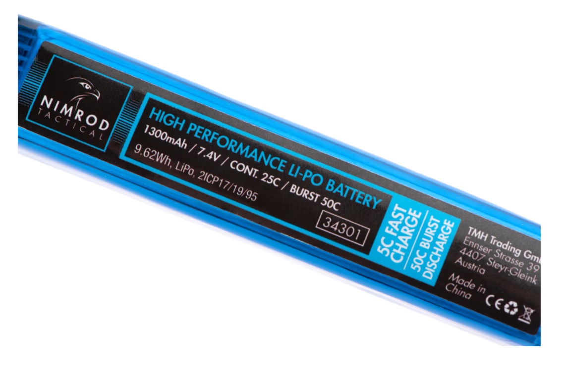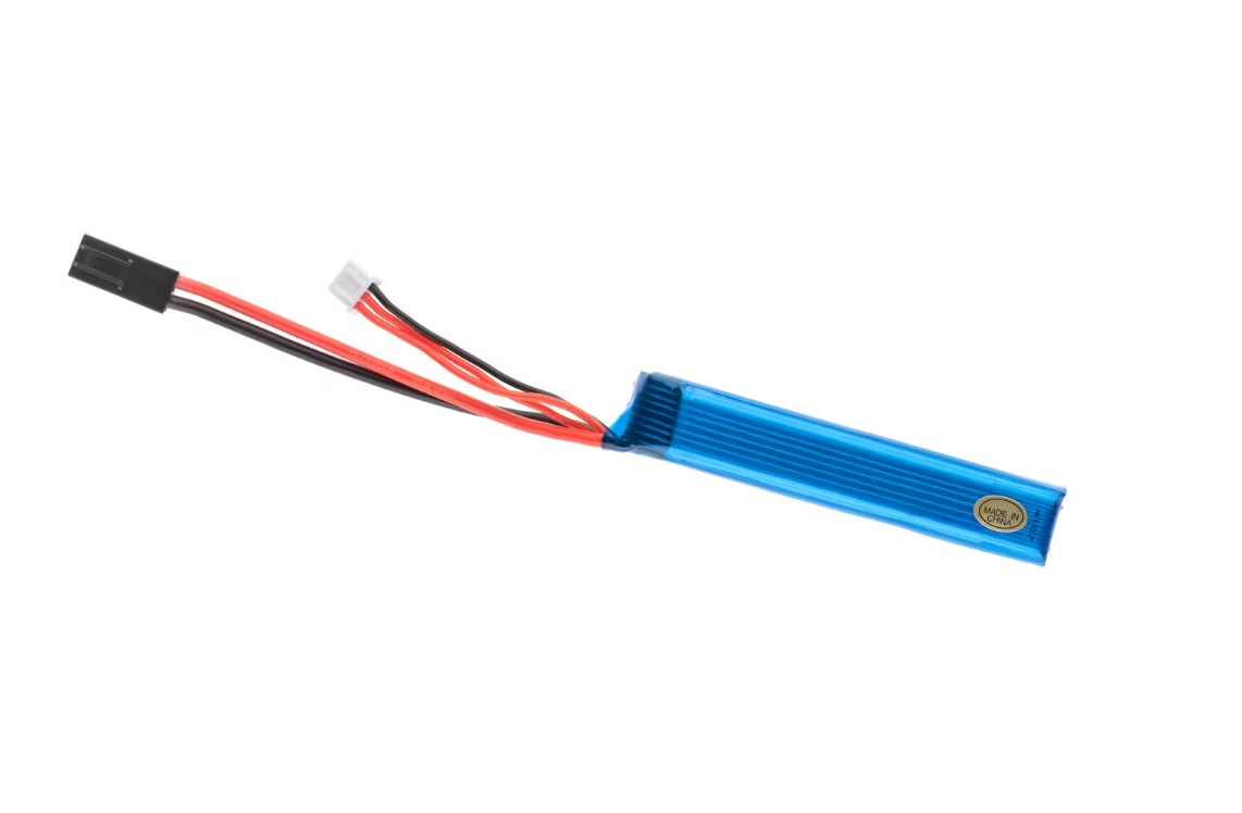 SpecificațiiTensiune nominală: 7.4 V (2S – două celule în serie)Capacitate: 1300 mAhRată de descărcare continuă: 25 CRată de descărcare în vârf (burst): aprox. 39 A Mini-Type Stick – compact, ideal pentru replici cu spațiu redus (ex: